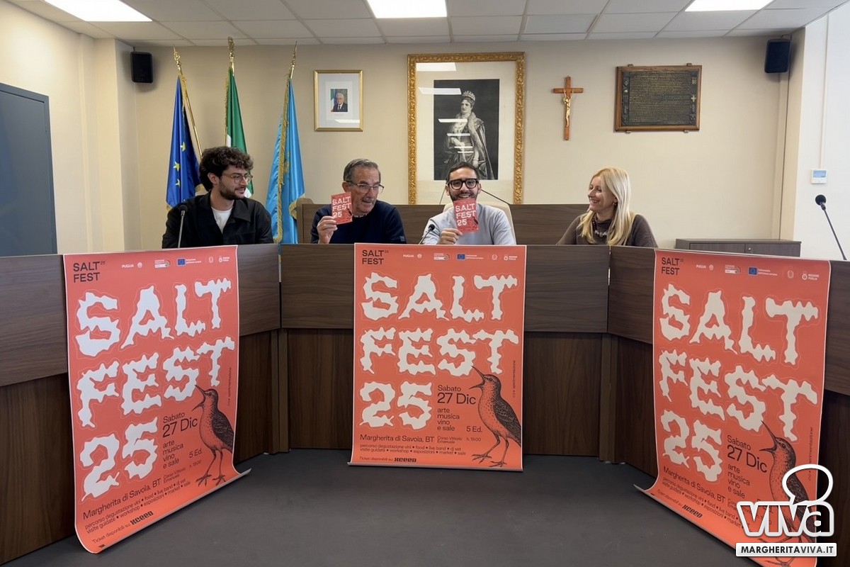 È stata presentata questa mattina presso l'aula consiliare del Comune di Margherita di Savoia la quinta edizione del "Salt Fest" che si svolgerà dal 20 al 27 dicembre a Margherita di Savoia, attraverso una serie di iniziative, incontri, degustazioni enogastronomiche e visite guidate.