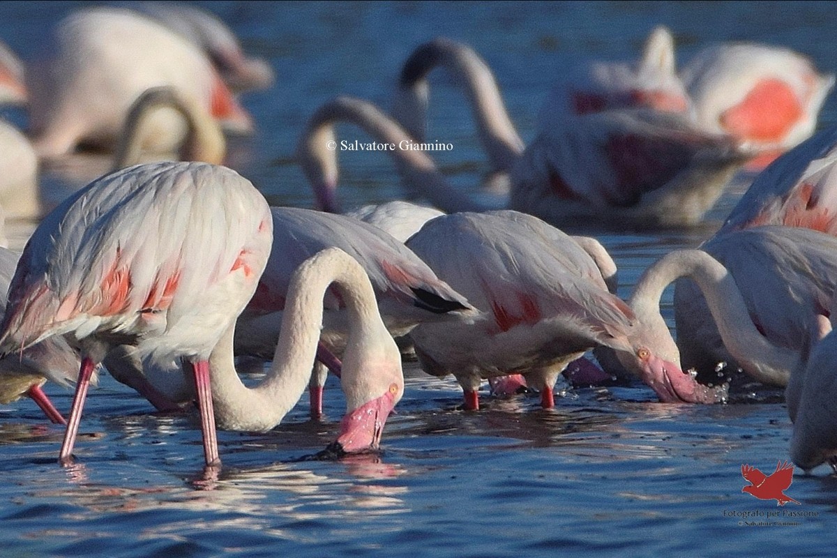 «Periodicamente durante l'anno - racconta Salvatore Giannino - è possibile vedere i fenicotteri anche in prossimità del centro abitato, sebbene la loro presenza dipenda dalla concentrazione di sale nel bacino e dalla disponibilità di cibo in quella zona. I fenicotteri si spostano infatti dove trovano il cibo, che non è presente tutto l'anno in tutte le zone. In genere, li si osserva più di frequente nei bacini lungo la strada che collega il paese ai quartieri di Città Giardino e Isolaverde».