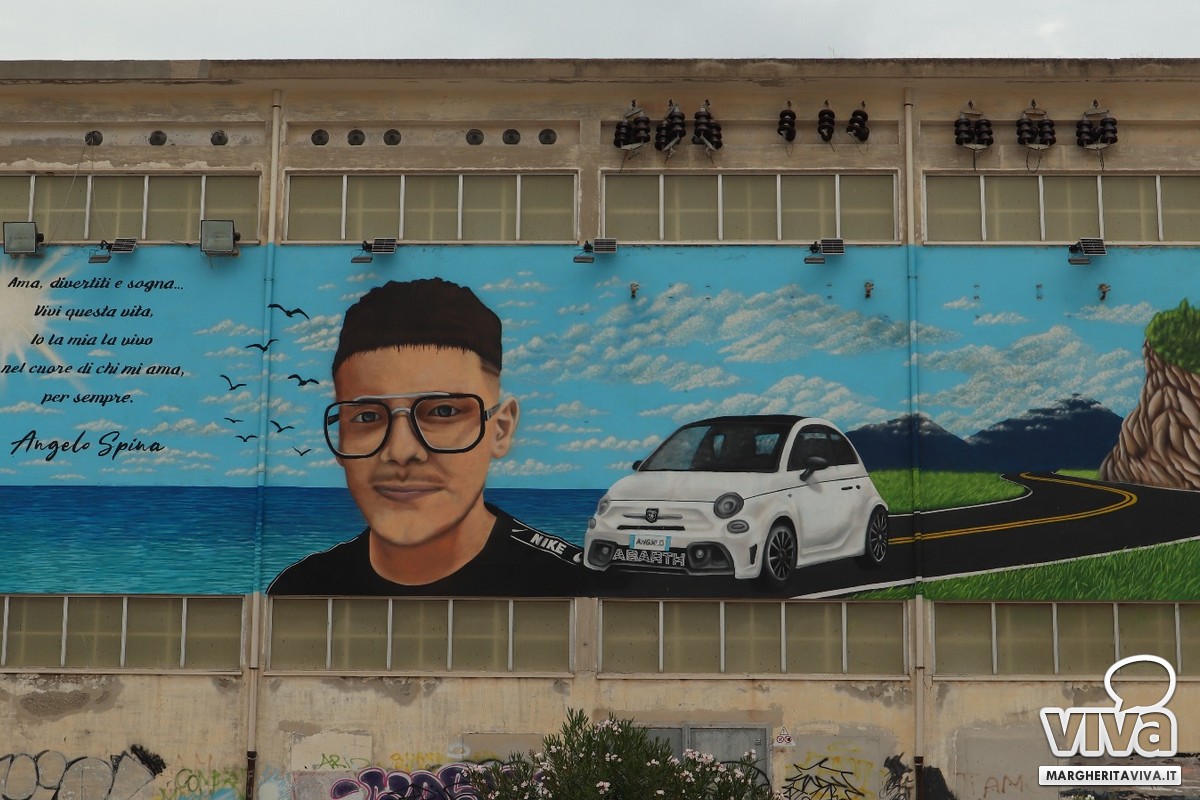 Il murales, ricco di significato e di emozione, raffigura Angelo con alle spalle il mare, la strada e la sua amata 500 Abarth bianca, compagna inseparabile di tanti momenti felici. A corredo dell'opera, una frase che sintetizza lo spirito libero e solare del giovane salinaro: