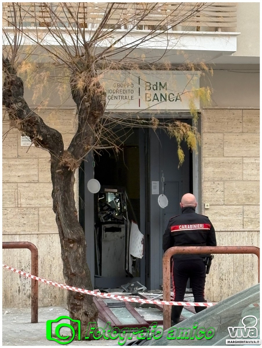 Non si ferma l'escalation degli assalti ai bancomat in Puglia. Un nuovo colpo è stato messo a segno nella notte a Margherita di Savoia, dove intorno alle 04:00, tre malviventi hanno fatto esplodere con due ordigni il bancomat della banca BDM, situato nella centralissima via Africa Orientale.