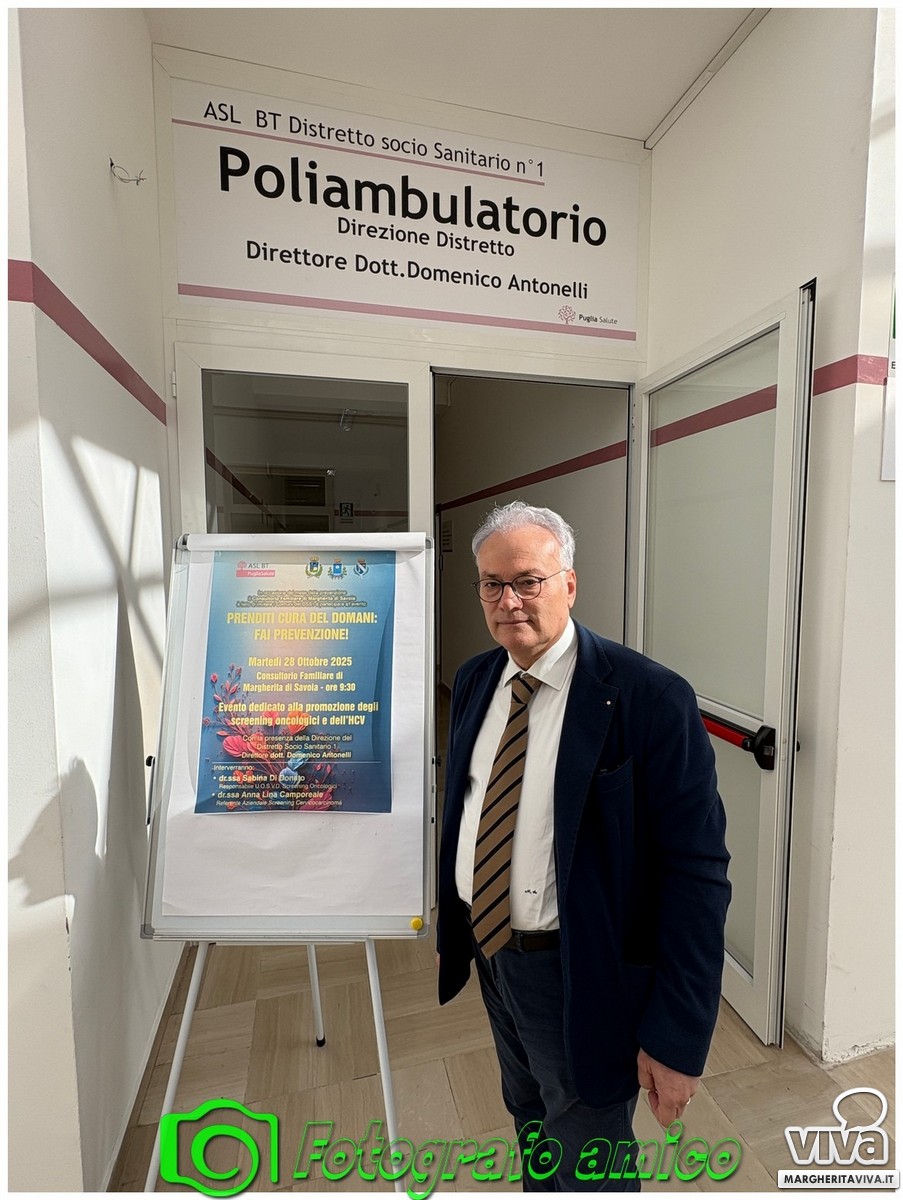 «Ottobre è il mese della prevenzione - spiega Domenico Antonelli, direttore del Distretto Socio-Sanitario 1 - La Asl Bat, e in modo particolare il Distretto 1, ha organizzato questa giornata dedicata alla prevenzione, attraverso cui sensibilizzare ed informare sugli screening oncologici e dell'HCV».