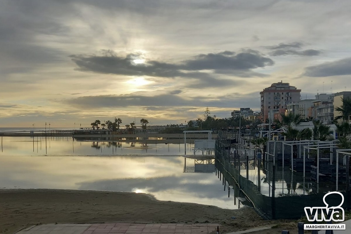 Una lieve mareggiata ha animato questa mattina la spiaggia di Margherita di Savoia, con le onde che hanno raggiunto i gazebo di alcuni stabilimenti balneari, senza però registrare nessun danno a strutture o persone. L'acqua si è spinta fino a pochi metri dal lungomare, creando uno spettacolo suggestivo e trasformando la spiaggia in una "piccola Venezia".